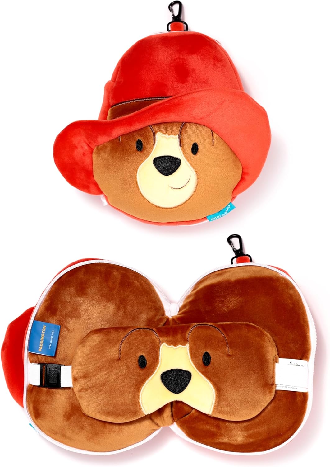 Relaxeazzz Paddington Bear Travel Pillow & Eye Mask - Plushie Sleeping Mask for Airplane - Flight Pillow for Kids Adults - Cute Sleeping Mask